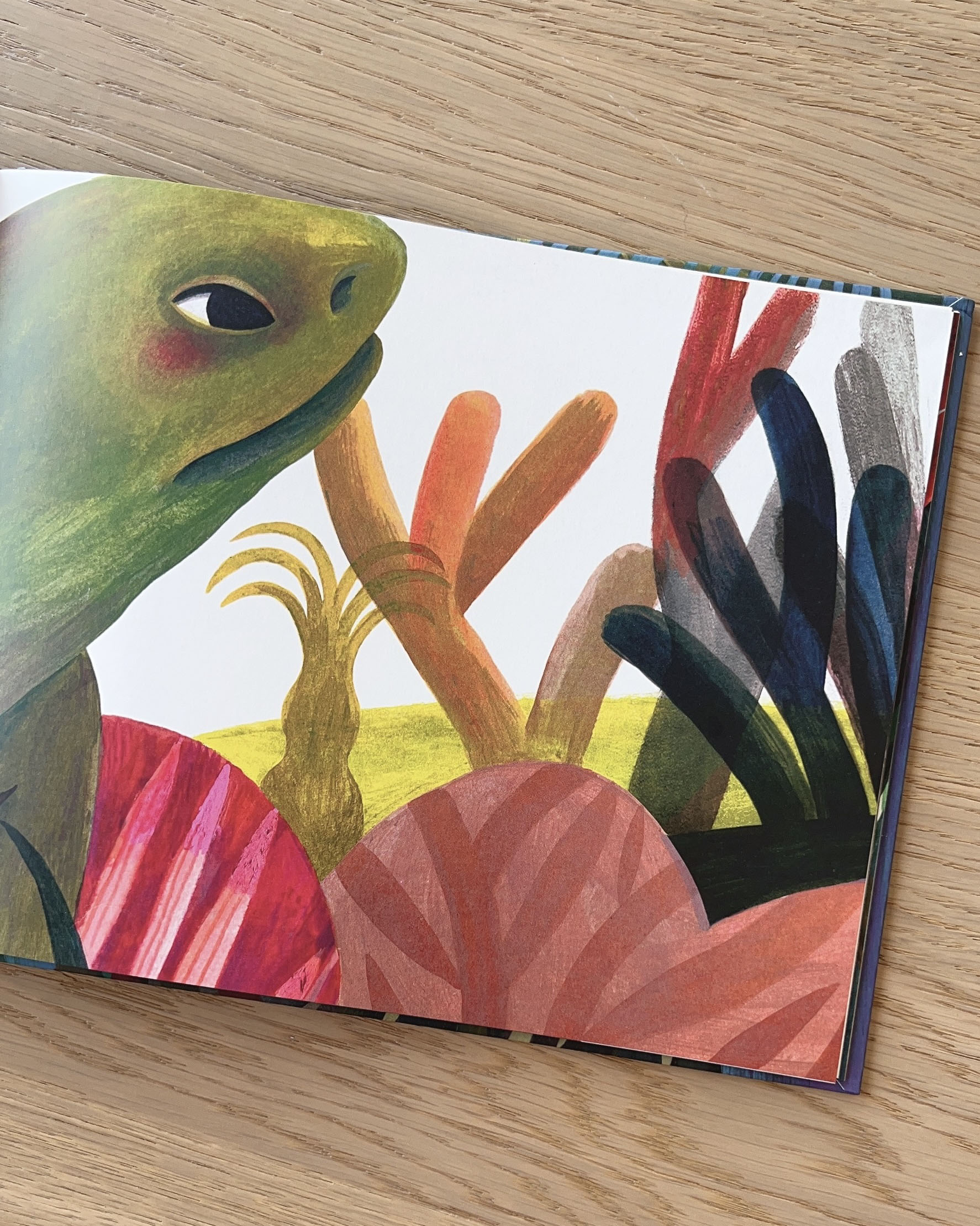 Después de El león Kandinga (Premio Fundación CJ 2009 en Corea, mención del Premio Città di Bella 2011 en Italia y recomendación de lectura en el Premio FNLIJ 2011 de Brasil), el autor y narrador oral Boniface Ofogo adapta otro relato de la milenaria tradición africana. «A paso de tortuga» es una fábula protagonizada por la criatura más longeva y sabia, paciente y perseverante; un relato sobre cómo logró la salvación de toda la fauna. Porque ni la veloz y astuta liebre, ni el grande e imponente elefante, ni tampoco el rinoceronte, ni el chimpancé, ni la jirafa… fueron capaces de transmitir la fórmula de la supervivencia que, curiosamente, procedía de la boa, una criatura que -en la cultura occidental- se asocia al peligro, la crueldad y la muerte. Además de derribar ciertos prejuicios, este cuento tradicional adaptado también pone el foco en la supremacía que los humanos hemos ejercido desde tiempo inmemorial sobre los demás habitantes del planeta, rompiendo el equilibrio y la armonía entre especies. Una historia con un ritmo narrativo ágil, cuya intensidad se basa en las estructuras dialogadas, los hábiles giros argumentales y la repetición de acciones que remiten a las fuentes de la oralidad. Las ilustraciones de Rebeca Luciani nos transportan a escenarios diversos: intensos cuando remiten a tiempos felices y oscuros en la adversidad, con una paleta exuberante donde las formas y los colores combinan la figuración y la experimentación
