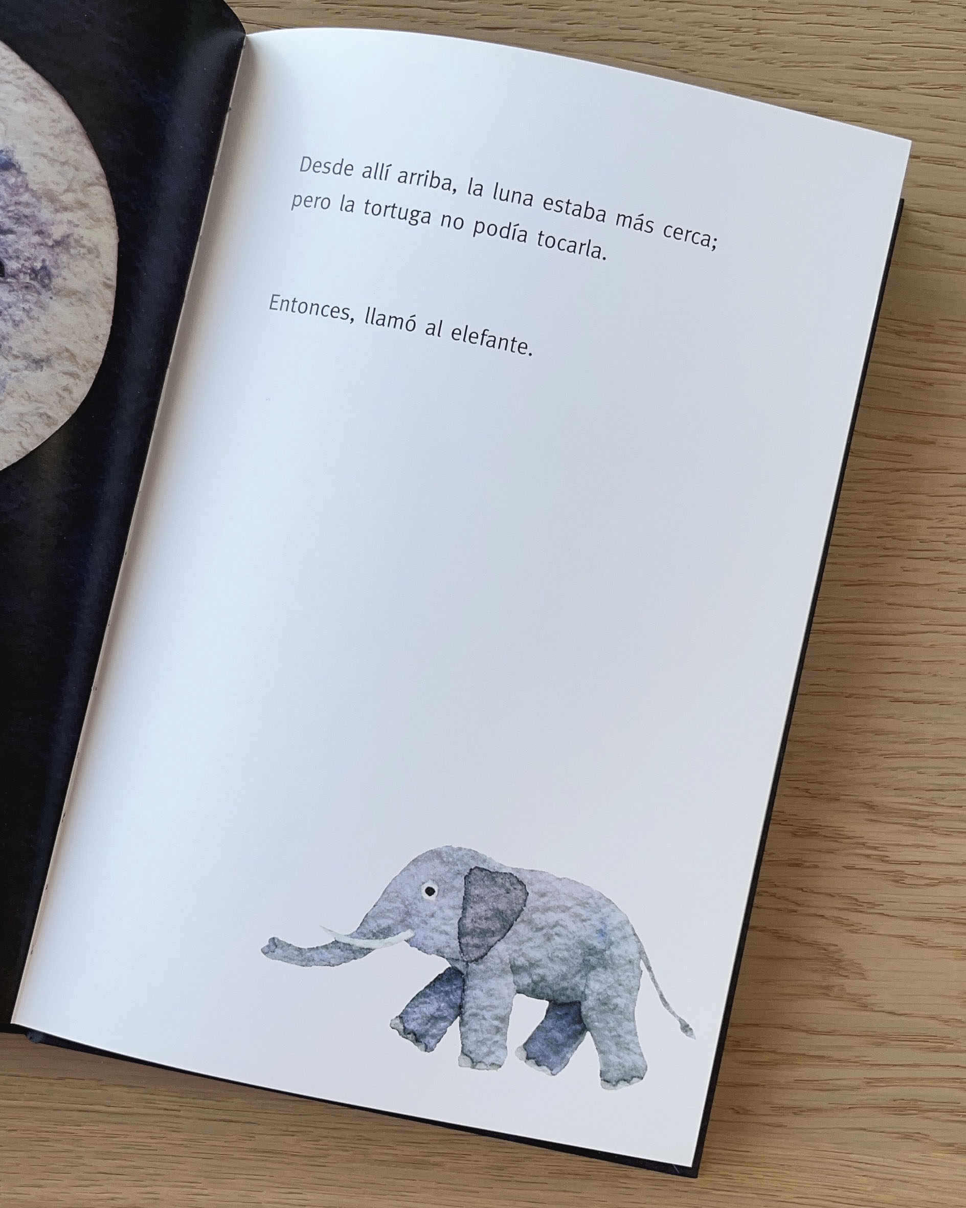 ¿Quién no ha soñado alguna vez con darle un mordisco a la luna? Este era el deseo de los animales de este cuento. Solo querían probar un pedacito pero, por más que se estiraban, no eran capaces de tocarla. Entonces, la tortuga tuvo una idea genial: “Si te subes a mi espalda, tal vez lleguemos a la luna”, le dijo al elefante. Una historia de deseos que parecen inalcanzables, pero que consiguen hacerse realidad gracias a la cooperación.