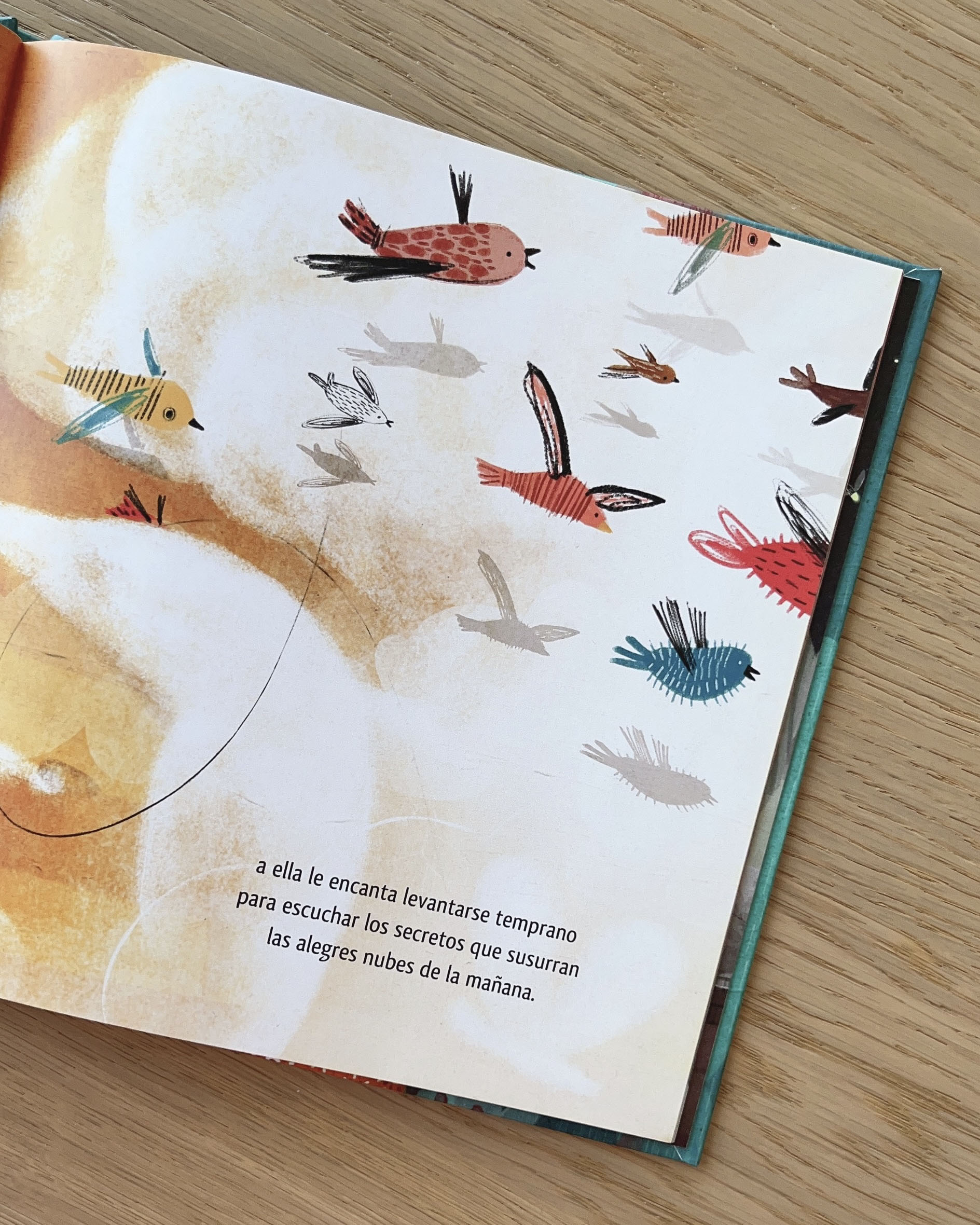 La capacidad para escuchar (y estar en) las nubes, mecerse entre las olas del mar, aprovechar cada destello de luz y color que nos ofrece el día o jugar con la luna, es una habilidad de la que no todo el mundo puede disfrutar. Pero la protagonista de este libro es “Distinta”. Otros protestan por madrugar, se enfadan en los atascos, se aburren con la rutina o se van a dormir sin haber experimentado nuevas emociones. La explosión cromática y el vivo dinamismo de las ilustraciones a doble página de Sozapato envuelven la lectura del breve texto que propone Beto Valencia.