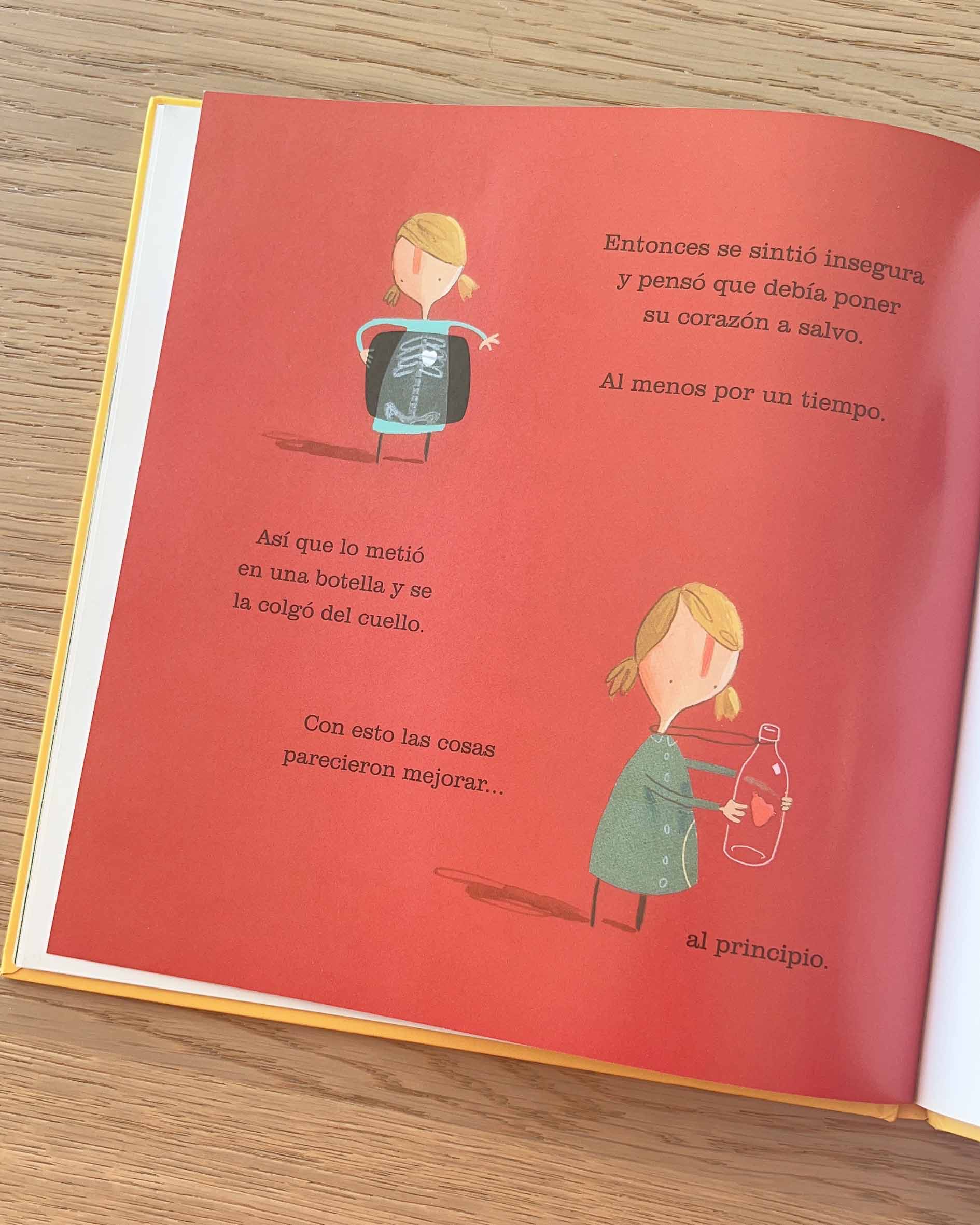 Una niña guarda su corazón en una botella, pensando que así lo cuidará mejor. Pero, a cambio de no volver a sentirse triste, la curiosidad y la capacidad de asombro no le acompañaron más. El autor de El misterioso caso del oso presenta otra gran historia, cuyo mensaje logra conmover a chicos y grandes, y que nos recuerda lo bueno de tener el corazón en su lugar
