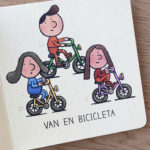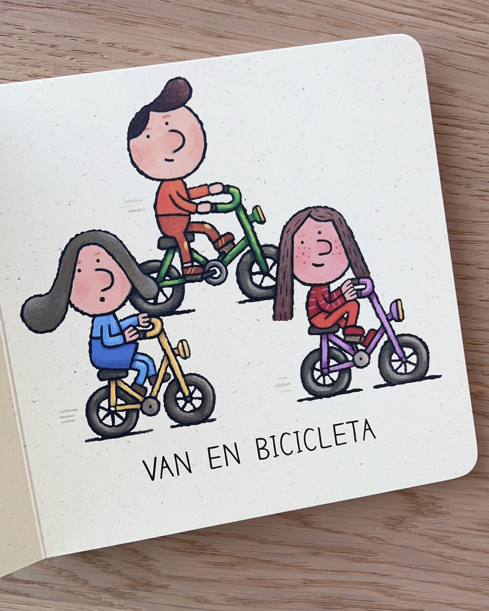 Niñas y niños de distintas edades y culturas -un guiño a la diversidad- se desplazan en medios de locomoción individuales y colectivos tanto para jugar como para llegar a otros lugares: monopatín, bicicleta, automóvil…